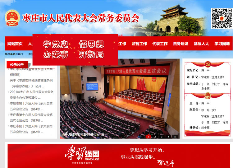 棗莊市人民代表大會是棗莊市的國家權(quán)力機關(guān)。 棗莊市人民代表大會每屆任期五年,每年至少舉行一次會議。會議由市人大常委會召集。經(jīng)過五分之一以上代表建議,可以臨時召集市人民代表大會會議。1960年,棗莊市人民代表大會建立,并召開了棗莊市第一屆人民代表大會第一次會議。 棗莊市人民代表大會行使下列職權(quán):在本行政區(qū)域內(nèi),保證憲法、法律、行政法規(guī)和上級人民代表大會及其常委會決議的遵守和執(zhí)行,保證國家計劃和國家預(yù)算的執(zhí)行;審查和批準(zhǔn)本市的國民經(jīng)濟和社會發(fā)展計劃、預(yù)算以及它們執(zhí)行情況的報告;討論、決定本市的政治、經(jīng)濟、教育、科學(xué)、文化、衛(wèi)生、環(huán)境和資源保護、民政、民族等工作的重大事項;選舉市人大常委會的組成人員;選舉市長、副市長;選舉市監(jiān)察委員會主任、市中級人民法院院長和人民檢察院檢察長。選出的市人民檢察院檢察長,須報經(jīng)省人民檢察院檢察長提請省人大常委會批準(zhǔn);選舉省人民代表大會代表;聽取和審查市人大常委會的工作報告;聽取和審查市人民政府、中級人民法院和人民檢察院的工作報告;改變或者撤銷市人大常委會的不適當(dāng)?shù)臎Q議;撤銷市人民政府的不適當(dāng)?shù)臎Q定和命令;保護社會主義的全民所有的財產(chǎn)和勞動群眾集體所有的財產(chǎn),保護公民私人所有的合法財產(chǎn),維護社會秩序,保障公民的人身權(quán)利、民主權(quán)利和其他權(quán)利;保護各種經(jīng)濟組織的合法權(quán)益;保障少數(shù)民族的權(quán)利;保障憲法和法律賦予婦女的男女平等、同工同酬和婚姻自由等各項權(quán)利。 棗莊市第十六屆人民代表大會代表共有394名。市十六屆人大一次會議于2017年2月19日至23日舉行,決定設(shè)立市第十六屆人民代表大會法制委員會、內(nèi)務(wù)司法委員會、財政經(jīng)濟委員會、教育科學(xué)文化衛(wèi)生委員會、城鄉(xiāng)建設(shè)環(huán)境保護委員會、農(nóng)業(yè)與農(nóng)村委員會、民族僑務(wù)外事委員會。 棗莊市十六屆人大三次會議于2019年1月6日至9日舉行,決定增設(shè)棗莊市第十六屆人民代表大會社會建設(shè)委員會和更名棗莊市第十六屆人民代表大會內(nèi)務(wù)司法委員會為棗莊市第十六屆人民代表大會監(jiān)察和司法委員會。 |